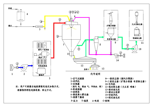 閉路循環(huán)離心噴霧干燥機(jī)熱煙道氣流動(dòng)通過(guò)其中的大部分熱能被傳遞到空氣/蒸汽混合物中循環(huán)的閉合干燥空氣回路的熱交換器。經(jīng)冷卻的煙道氣(廢氣)離開(kāi)熱交換器,并通過(guò)排氣鼓風(fēng)機(jī),被在140-180 ℃的溫度下釋放到大氣通過(guò)排氣堆棧?! ?br />        此外,BLPG閉路循環(huán)離心噴霧干燥機(jī)熱能需要通過(guò)空氣 - 空氣熱交換器干燥該物料轉(zhuǎn)移。該干燥空氣被包含在一個(gè)封閉的回路系統(tǒng)使大量的熱回收的利益,因此使得該工藝比其它系統(tǒng)范圍內(nèi)。此外,由于初級(jí)能量產(chǎn)生源是分開(kāi)的,而不是在與物料直接接觸,有火花或在燃燒室內(nèi)產(chǎn)生熱粒子的風(fēng)險(xiǎn),被直接運(yùn)送到其中潛在的高層次的炸藥或可燃材料。